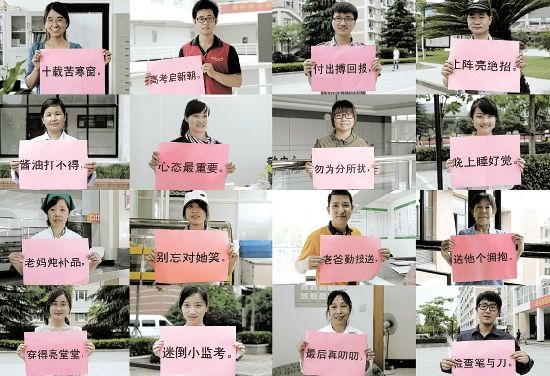 6月6日,久久精品一区二区的学生戚家超和张聪,为高考(微博)编写了打油诗,并邀请16人共同拍摄完成了一幅组照。
