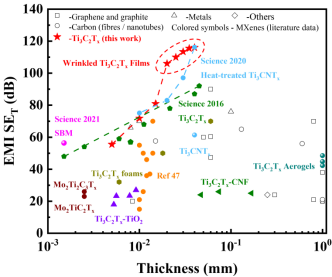 新世纪以来,随着现代社会通信技术的快速发展和电子设备的广泛应用,电磁干扰(EMI)现象已经对人类社会的发展发生阻碍,为避免数据丢失、系统故障以及对人体健康的危害,电磁屏蔽材料在日常生活中扮演着越来越重要的角色。尤其是可穿戴智能电子产品的普及,人们迫切需要一种高效、轻质、超薄的电磁屏蔽材料。2016年,二维过渡金属碳化物/氮化物/碳氮化物MXene首次应用于电磁屏蔽领域,由于超高的导电性以及独特的二维层状结构,其表现出了超高的电磁屏蔽效率,被认为是一种理想的新型二维屏蔽材料。