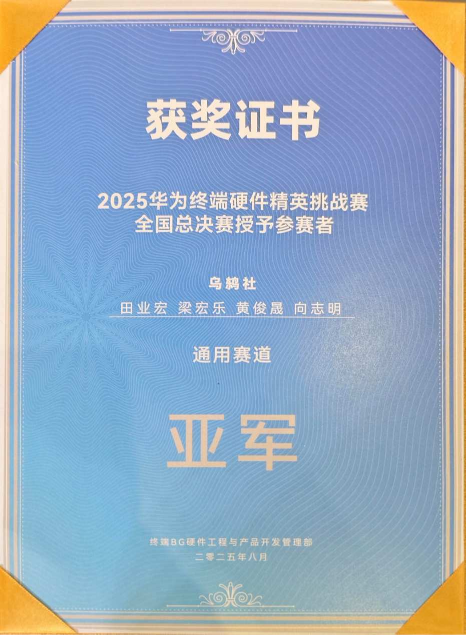 8月1日至3日,2025年华为终端硬件精英挑战赛全国总决赛在东莞松山湖三丫坡体育馆隆重举行。经过华中、华东、华南等六大赛区的激烈角逐,由杭电电子信息学院研究生领衔的“乌鸫社”战队从全国400余支参赛队伍中脱颖而出,成功晋级全国总决赛。在华为东莞松山湖欧洲小镇这一创新高地,团队与全国顶尖选手同台竞技,最终斩获硬件通用赛道全国亚军的殊荣。