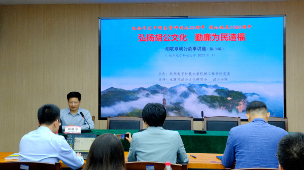 胡公即后人对胡则的尊称,一生浮沉宦海四十七载,继任北宋太宗、真宗、仁宗三朝,先后知温州、福州、杭州等,历践要途,是北宋前期政坛一位中高级官吏,在政治上力主宽刑薄赋,兴革使民,清正廉明,所到之处,政绩斐然,做了许多功国利民的好事。胡联章先生在报告中从“胡公的旅程”“胡公的功德”“胡公的魅力”“胡公的弘扬”四个方面对胡公文化进行了解读,将毛泽东同志对其称赞的“为官一任造福一方”做了阐释,讲述了习近平总书记曾多次称颂胡公等。