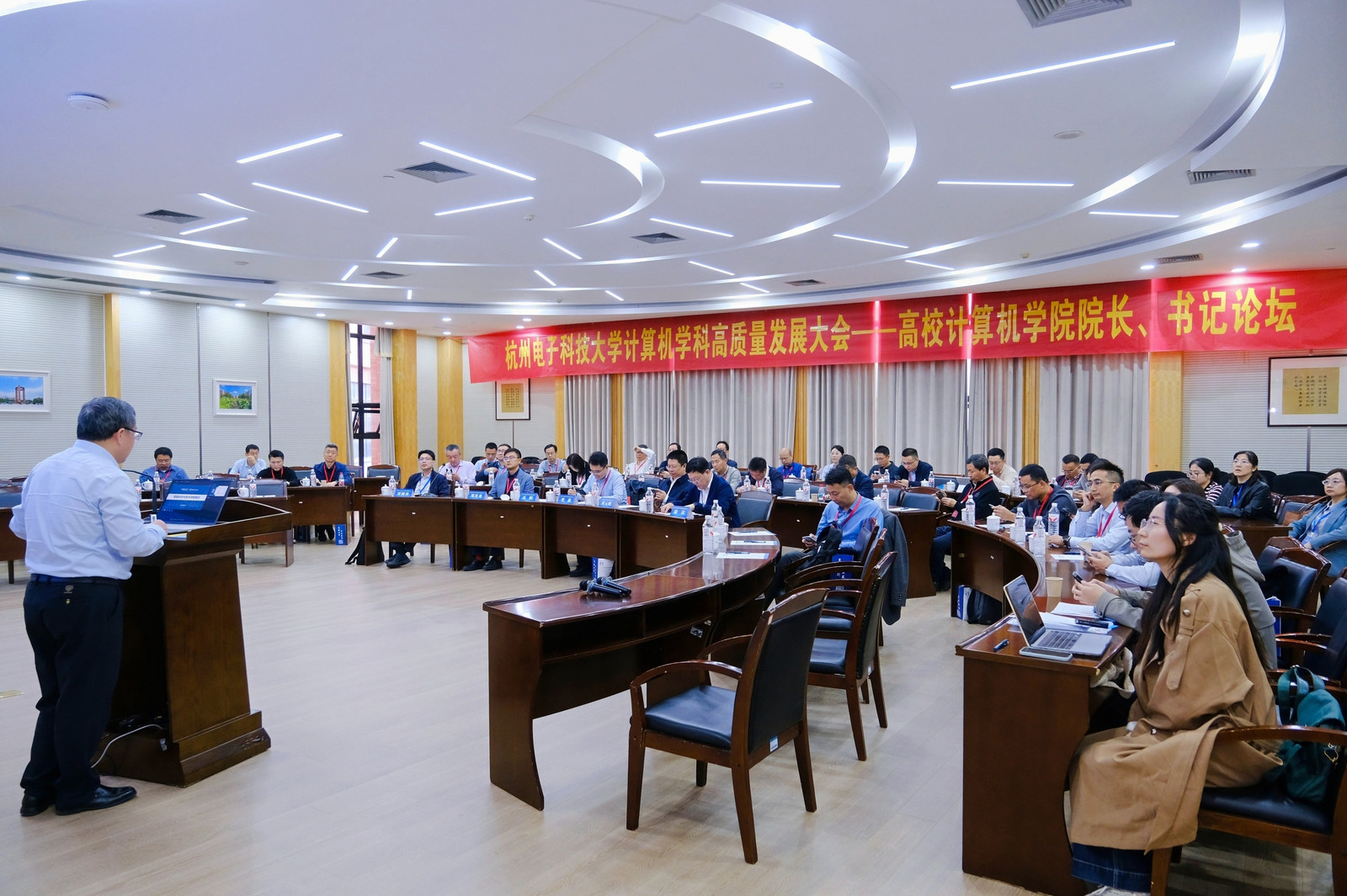 会上,陈积明校长发表致辞。他强调,计算机学科作为浙江省登峰学科和学校重点学科,要强化基础研究、突破关键核心技术、服务国家战略需求,进一步凝练特色优势、实现高质量内涵式发展。随后,徐岗作学科发展专题汇报,系统回顾了学科45年来的建设历程、标志性成果与未来规划。为提升学科建设的战略性、前瞻性与科学性,本次会议特别组建“计算机科学与技术学科专家组”,聘任朱文武(清华大学ACM Fellow、欧洲科学院外籍院士)、罗笑南(桂林电子科技大学学术委员会主任)、蒋云良(浙江师范大学党委书记)等12位国内知名高校计算机领域专家担任成员。专家组对杭电计算机学科的发展定位、方向布局与机制创新给予高度评价,并提出建设性指导意见。